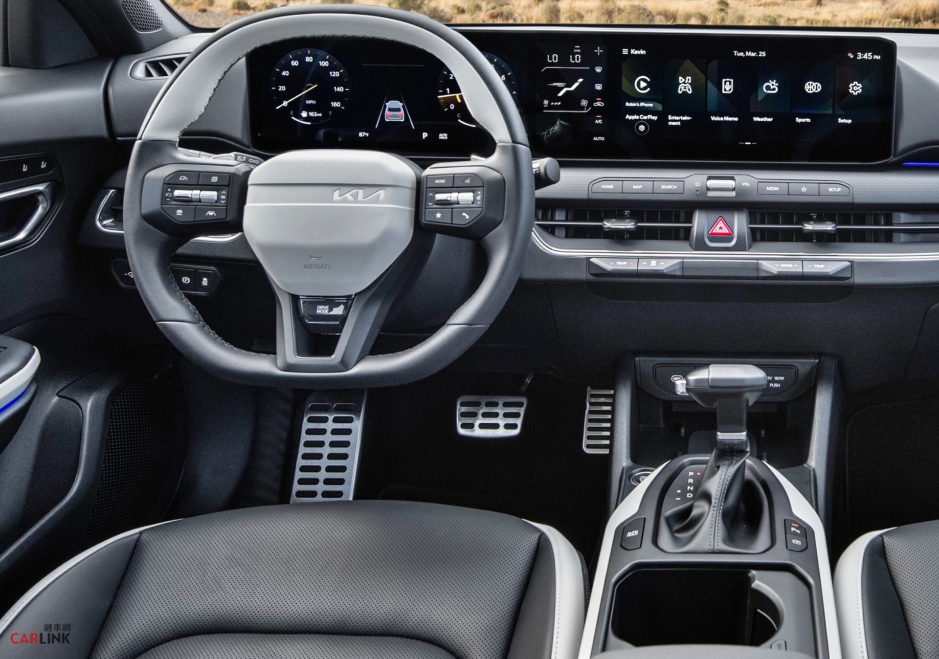 受電動車EV4啟發,K4配備整合雙12.3吋大螢幕的中控儀表檯,輔以5.3吋空調觸控面板,操作流暢又具未來感。並且有用於關鍵功能的物理旋鈕開關,例如控制溫度和風扇速度、音量和危險警示燈等。手機連接方面無線Apple CarPlay與Android Auto是標配,方便智慧生活無縫接軌。後座腿部與頭部空間充裕,行李廂達438升,不論日常通勤或假日出遊都夠友善。