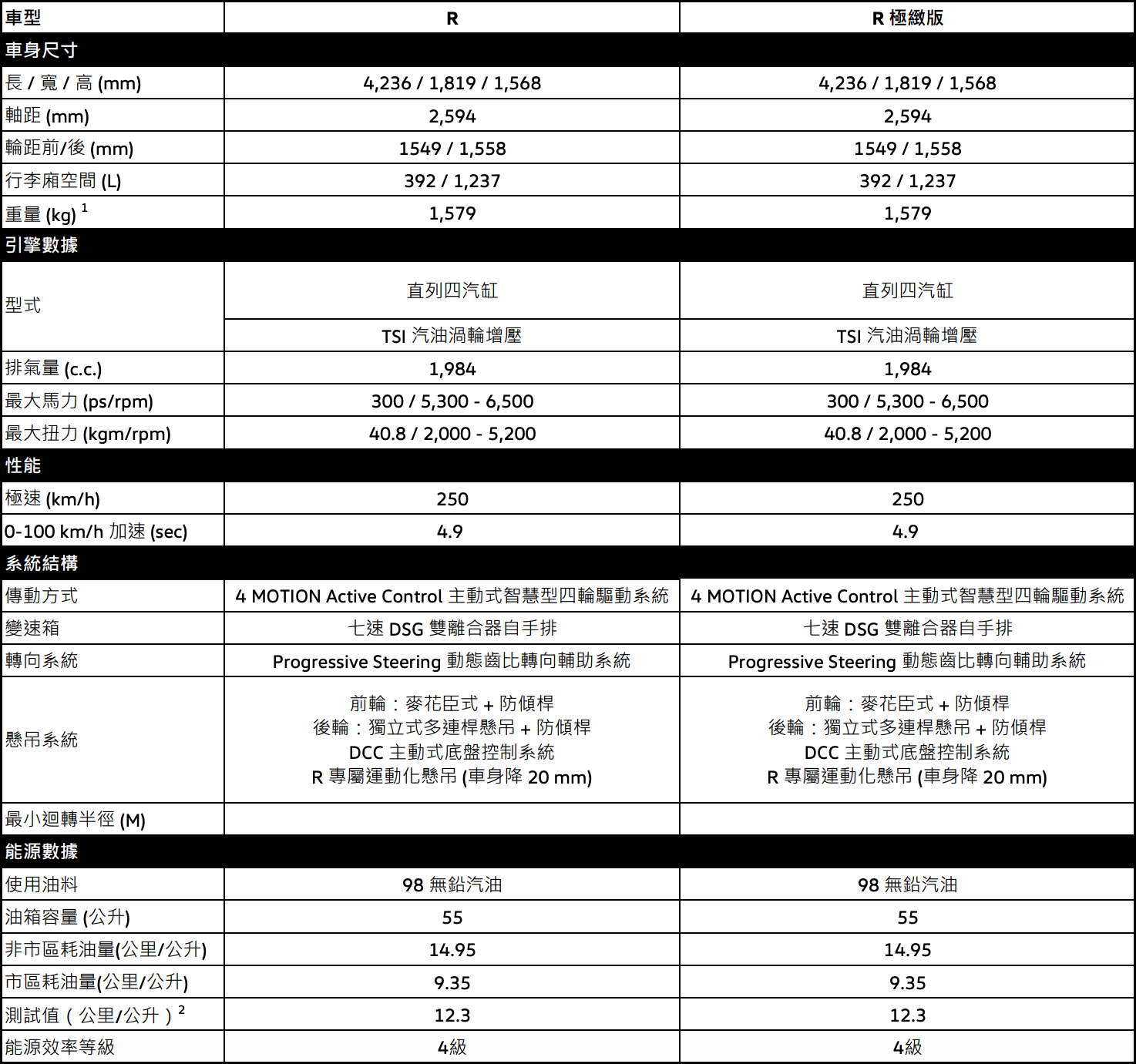 - The new T-Roc R極緻版擁強大動力配置,發揮最大馬力300ps、最大扭力40.8kgm和零百加速僅4.9秒的驚人實力,且以DCC 主動式底盤控制系統以及R 專屬運動化懸吊(車身降20mm)賦予一流操控。