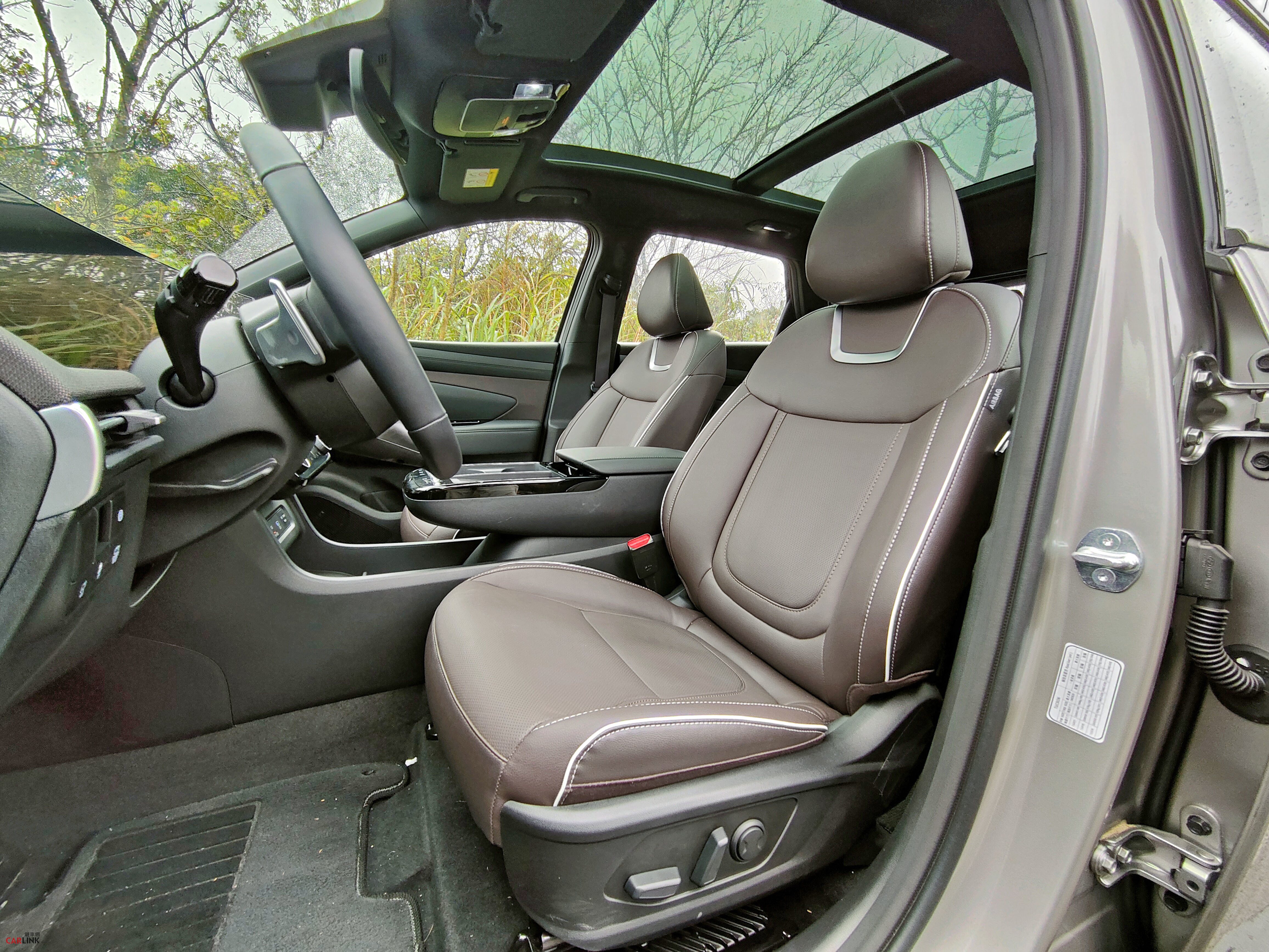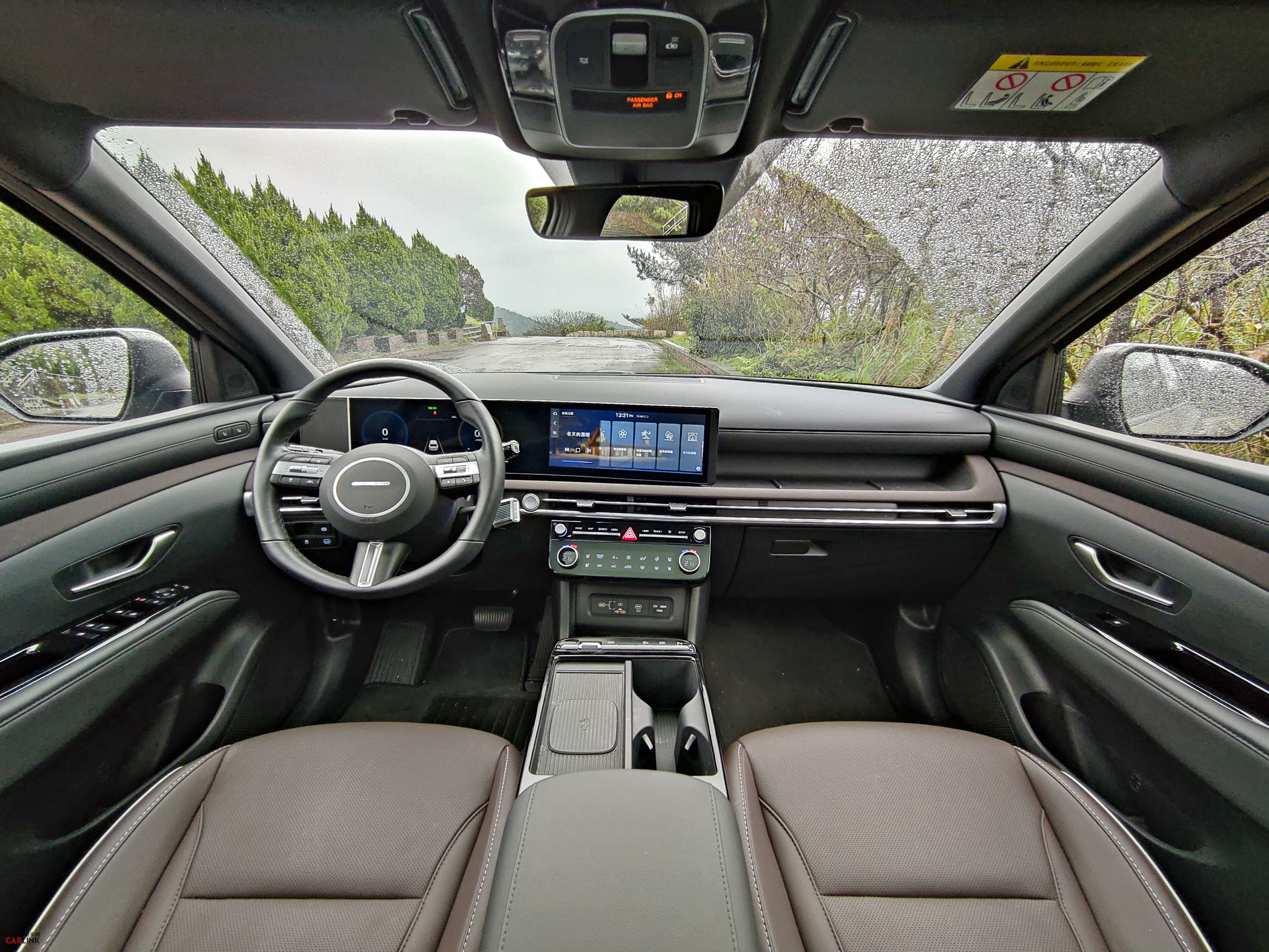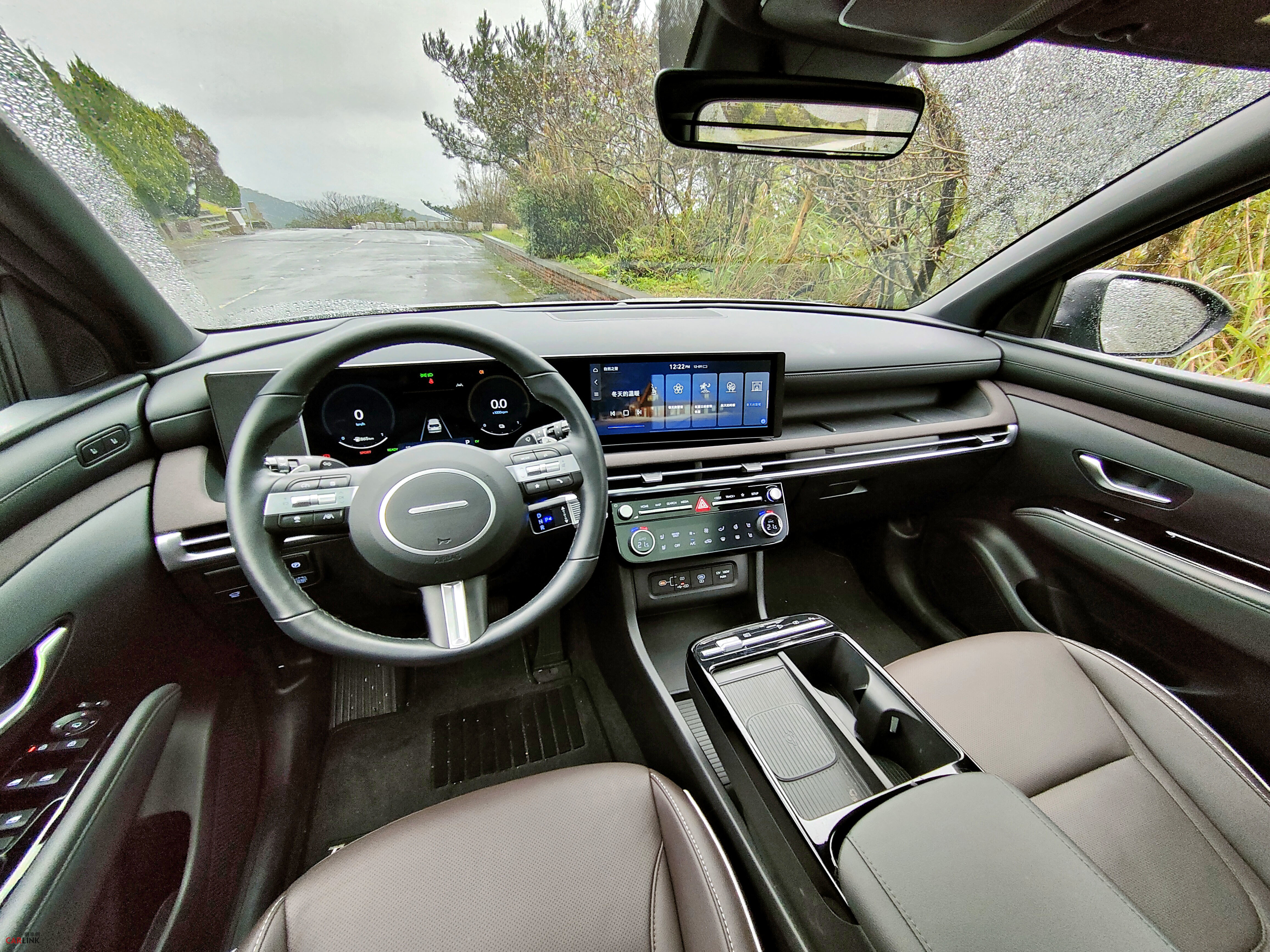 相較下,其他油電車款就是起步靈敏,但油門輕踩或重踩的反應,其實都差不多!沒有線性的回饋,也沒有加速的樂趣,這就是Tucson L與其他油電車的最大區別。別以為Tucson L Turbo Hybrid的油電架構是落後或是簡化的過時設計,正好相反!目前Lexus最新的2.4T高性能油電動力系統,應用在RX 500h性能旗艦車款(綜效馬力371ps、0-100km/6.2秒),基本架構其實和Tucson L Turbo Hybrid相似,而且同樣都是使用6AT變速箱,顯見這樣的油電系統,就是為著性能而生,但是依然可以兼顧油耗表現、舒適性、寧靜等特質。