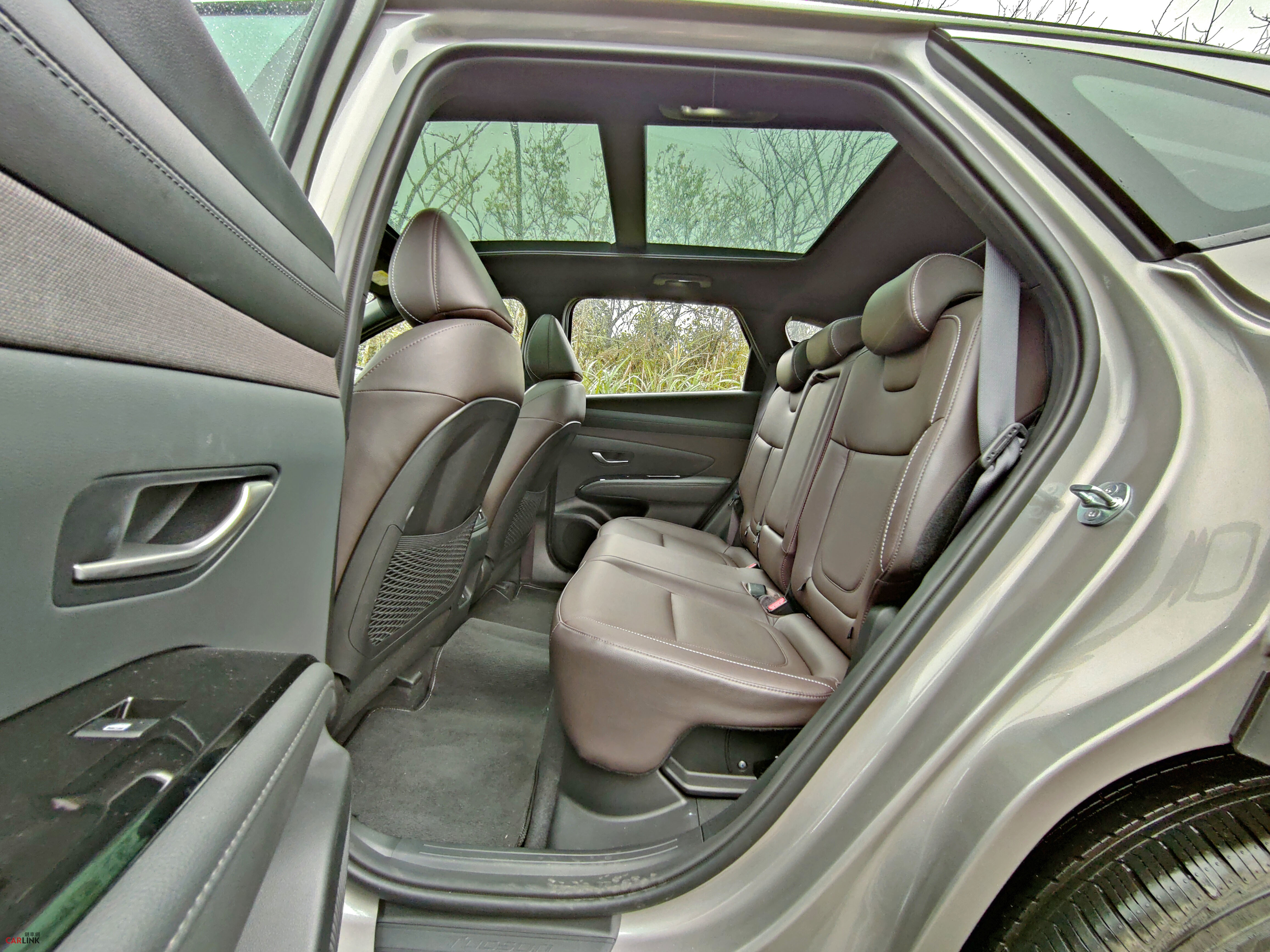 ▲不論空間或是機能,Tucson L充滿實用性,適合長途跋涉Tucson L 的優勢當然還包括寬敞的空間、豐富的置物機能,以及寧靜的座艙。高達582公升的後行李廂容積,可對應多人出遊、出國、露營等各種需求,底部的隱藏空間可以收納常用的購物袋、雨傘、清潔組、拖鞋、涼鞋等各種雜物。寬敞的第二排膝部空間,可輕鬆對應身高180cm的乘客,多段式椅背角度調整,讓長途旅行更加舒適。除了節能以外,新世代油電車亦著重寧靜與加速, Tucson L可說是面面俱到。有別於其他油電車款近似於CVT的加速感受,引擎噪音相對干擾,因此 Tucson L採用1.6T直噴渦輪引擎加上6AT變速箱,搭配引擎同軸馬達,加速感受就像是3.0升六缸引擎那般激情,同時消弭噪音與震動問題,但仍保留激情的駕馭樂趣,相較下,其他油電車款則是很難感受到貼背快感。是的,其他油電車款的駕馭感受,就是偏向日系車的棉柔風格,但 Tucson L則是強調歐系運動風範,畢竟 Tucson的開發過程,加速與性能參數都是在德國紐柏林賽道高速奔馳中所挖掘出來的經驗