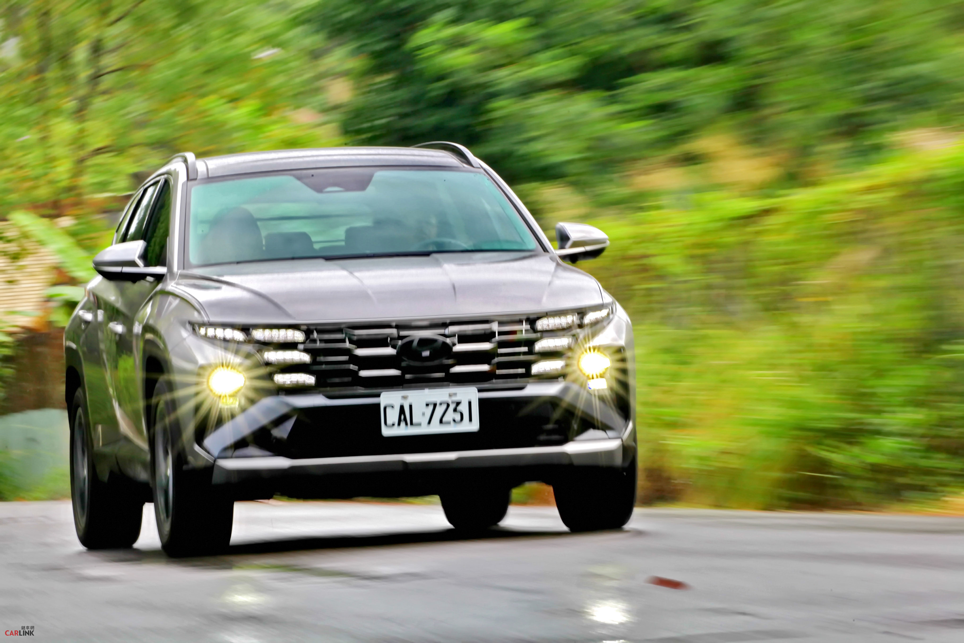 Tucson L Turbo Hybrid的底盤調校,應該是本車最獨特與最精華的部分,也是競爭對手找不到的那一份!是的,駕駛著Tucson L Turbo Hybrid一旦上了山道,很難不大腳油門往前衝,不只是動力充沛而且不會轟轟作響,更重要的是優異的歐系底盤風格,讓人躍躍欲試,不好好發揮一下Tucson L Turbo Hybrid的潛藏實力,實在是枉費原廠大費周章於歐洲賽道艱苦測試的種種辛勞!若是站在長途行駛的立場,Tucson L Turbo Hybrid可帶給駕駛與乘客穩定的高速行駛特質,以及彎道上低側傾的優異支撐性,意謂更舒適且不容易暈車,尤其是在山路行駛更為明顯,這就是歐系懸吊犀利之處,絕非性能玩家獨享,而是所有人都適用,而且開起來路感清晰、更好駕馭、容易上手。相較於軟懸吊,Tucson L Turbo Hybrid提供更Q彈的減震反應,遇到坑洞不容易搖晃,並沒有犧牲減震舒適性的疑慮,這絕對是長途旅行、長期用車的更好選擇,而且開起來更有個性。當然,若是站在性能玩家的立場,誰會去選擇一輛開起來軟趴趴、山路上搖頭晃腦的休旅車?就算乘客不暈、駕駛也可能先暈了!沒錯 Tucson L Turbo Hybrid在彎道上的駕馭感受,一如低重心轎車那般平穩、流暢、好控制,沒有受到重心與重量的影響,即便是一輛尺碼不算小的大空間SUV,但Tucson L Turbo Hybrid的平衡性、操控感就是那麼靈活暢快,讓人愛不釋手、開過一次就上癮!