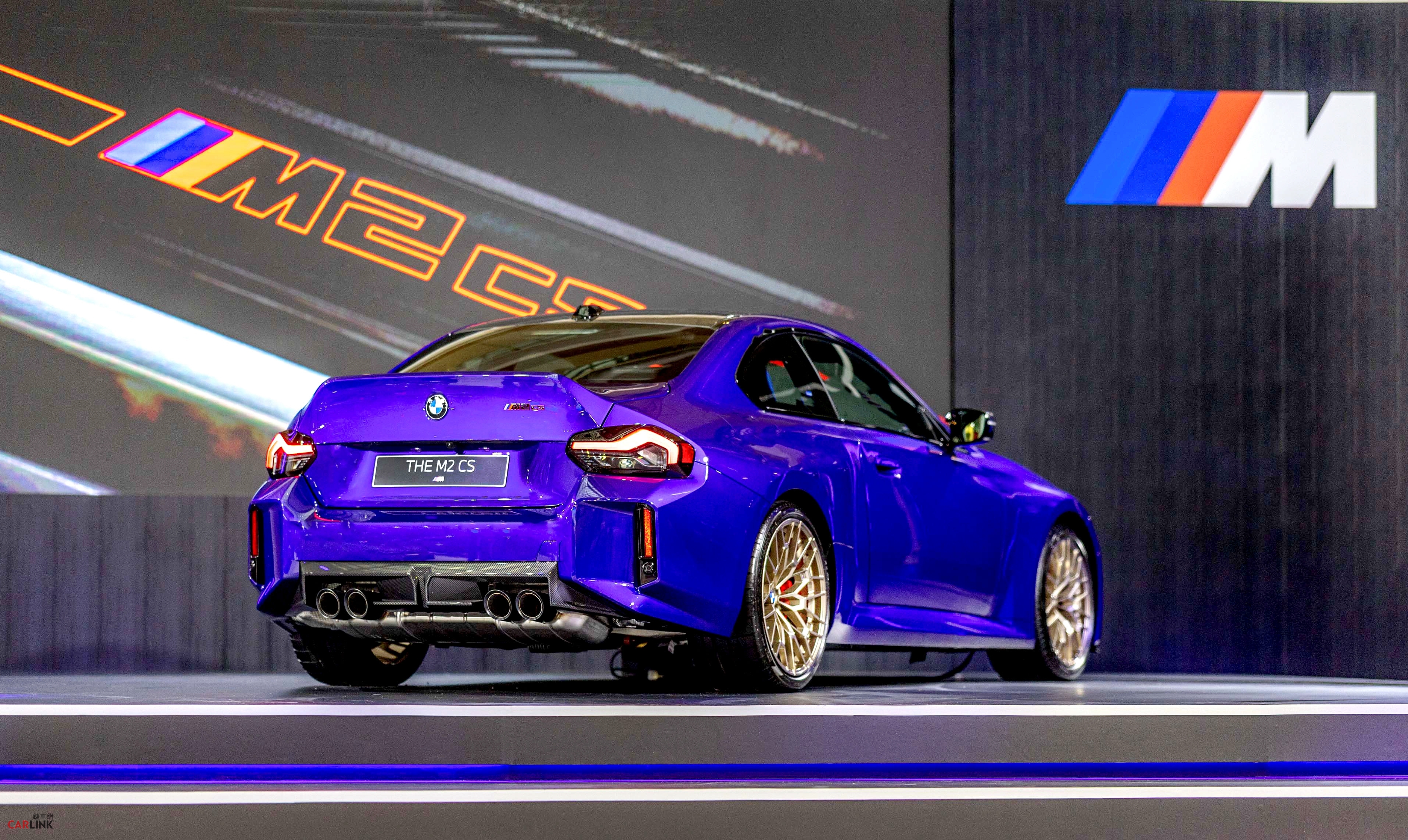 全新BMW M2 CS 的外觀設計向BMW經典CSL車型致敬,透過多項專屬設定,勾勒出更純粹的性能姿態。M2 CS的專屬雙腎型水箱護罩、加大前進氣口與前下擾流設計,結合燻黑造型頭燈與降低8 mm的車身高度,形塑出更低趴且更具侵略感的車身比例。整合鴨尾造型的碳纖維行李廂蓋與碳纖維後下擾流,不僅進一步優化空氣力學表現,也在視覺上鮮明傳遞其賽道取向的性能定位。在車身結構與輕量化工程方面,全新 BMW M2 CS 大量採用兼具高剛性與輕量化優勢的 CFRP 碳纖維複合材質,涵蓋車頂、後視鏡蓋、行李廂蓋與後下擾流,並延伸至座艙內的 M 碳纖維飾板與碳纖維中央鞍座;同時搭配包覆性更佳、重量更輕的 M 碳纖維賽車桶型座椅,使整體車重較全新 BMW M2 雙門跑車減輕約 30 公斤,進一步強化動態反應與操控精準度。制動系統方面,全新 BMW M2 CS 標準配備 M 複合式煞車系統(紅色卡鉗),於高強度操駕下提供更強勁且穩定的制動表現;另可選配耐高溫與耐磨耗表現更為出色的 M 碳纖維陶瓷煞車系統,同樣搭配紅色卡鉗,全面滿足賽道駕馭需求。