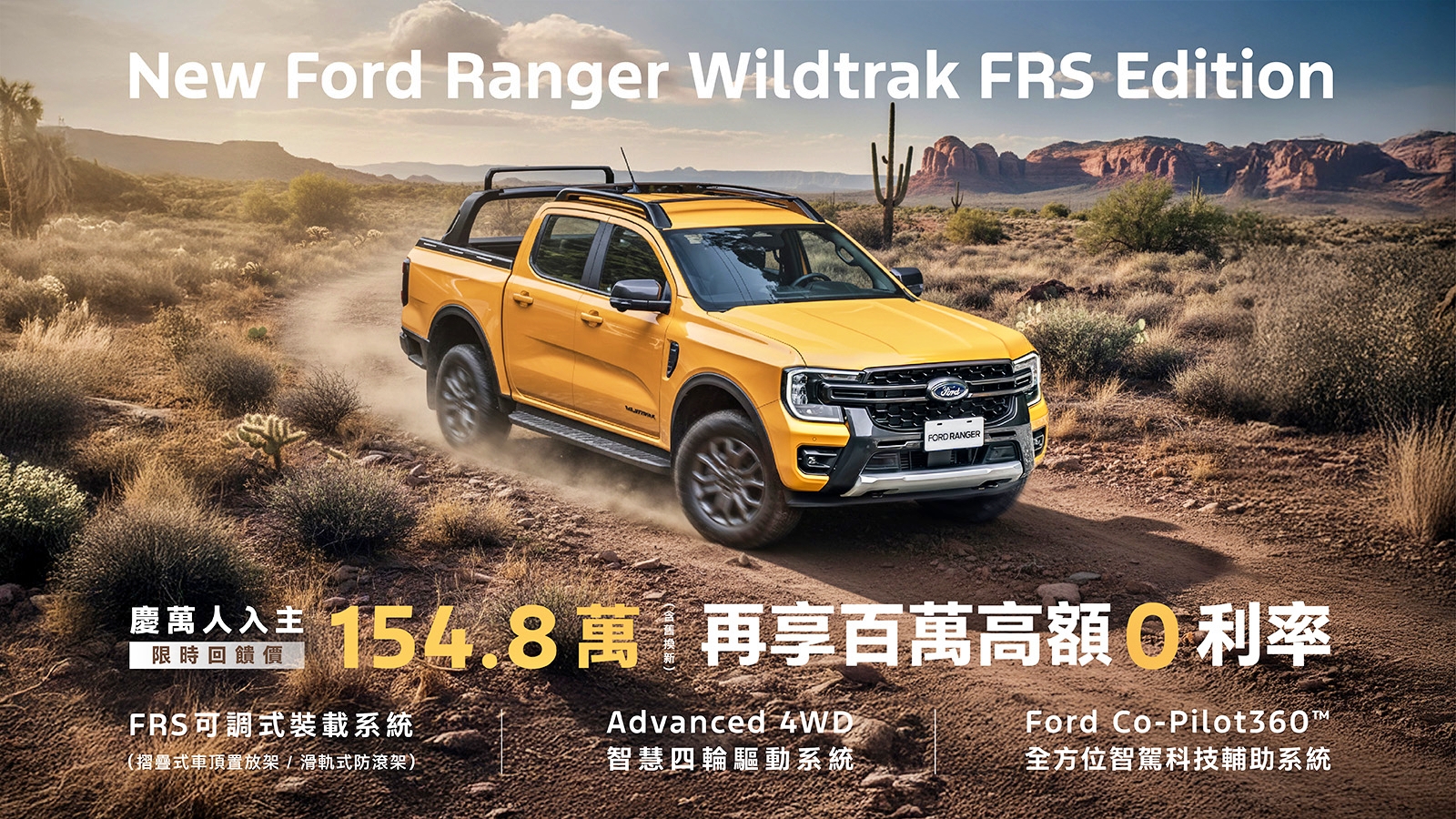 New Ford Ranger Wildtrak限時推出回饋價154.8萬(含舊換新),再享百萬0利率。