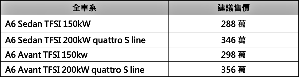 Audi A6 200 kW quattro S line車型即日起正式接單
