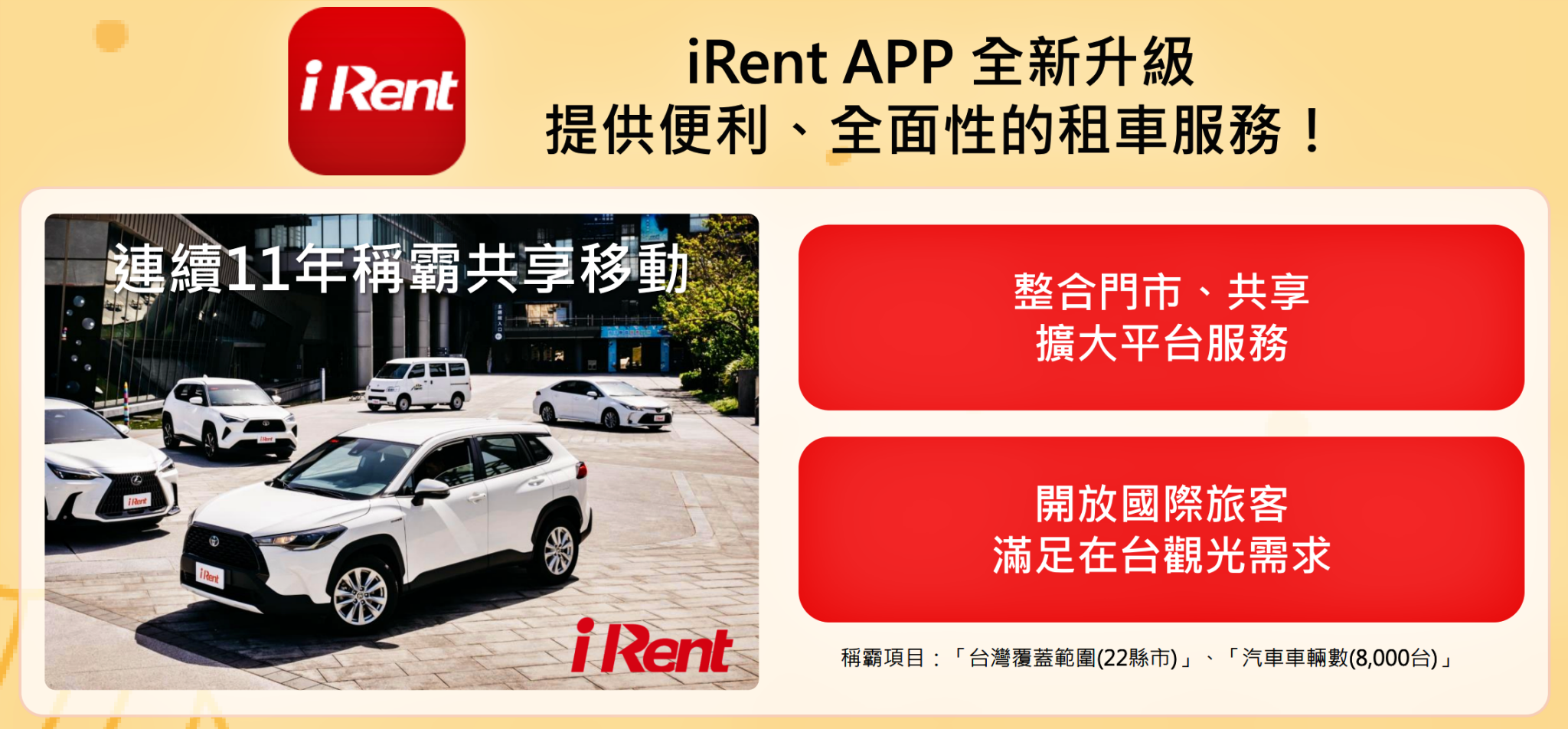 2)iRent 的無國界擴展: 跨越語言與國籍,開放海外旅客預約租車,背後依靠的是自動化預約與身分驗證的高效數位環境。