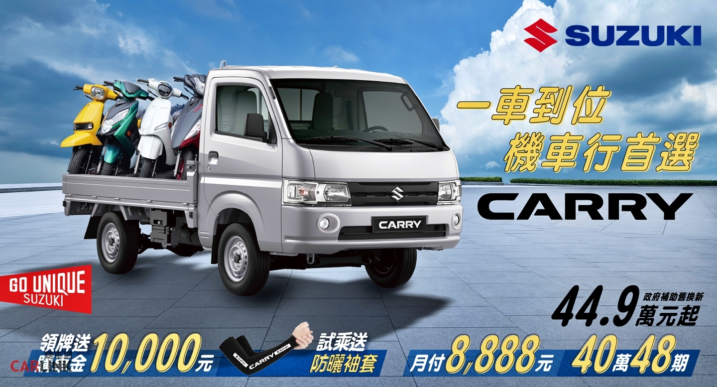 從日常出車到每一趟任務完成,CARRY 不只是運輸工具,更是支撐事業穩定運轉的重要角色。TAIWAN SUZUKI 持續以「BY YOUR SIDE」為核心,提供貼近實際需求的產品選擇,陪伴每一位努力打拼的使用者,在每一段路上穩健前行。即日起至4/30止:領牌享購車金優惠,試乘即贈專屬防曬袖套(數量有限),讓升級工作夥伴輕鬆無負擔。