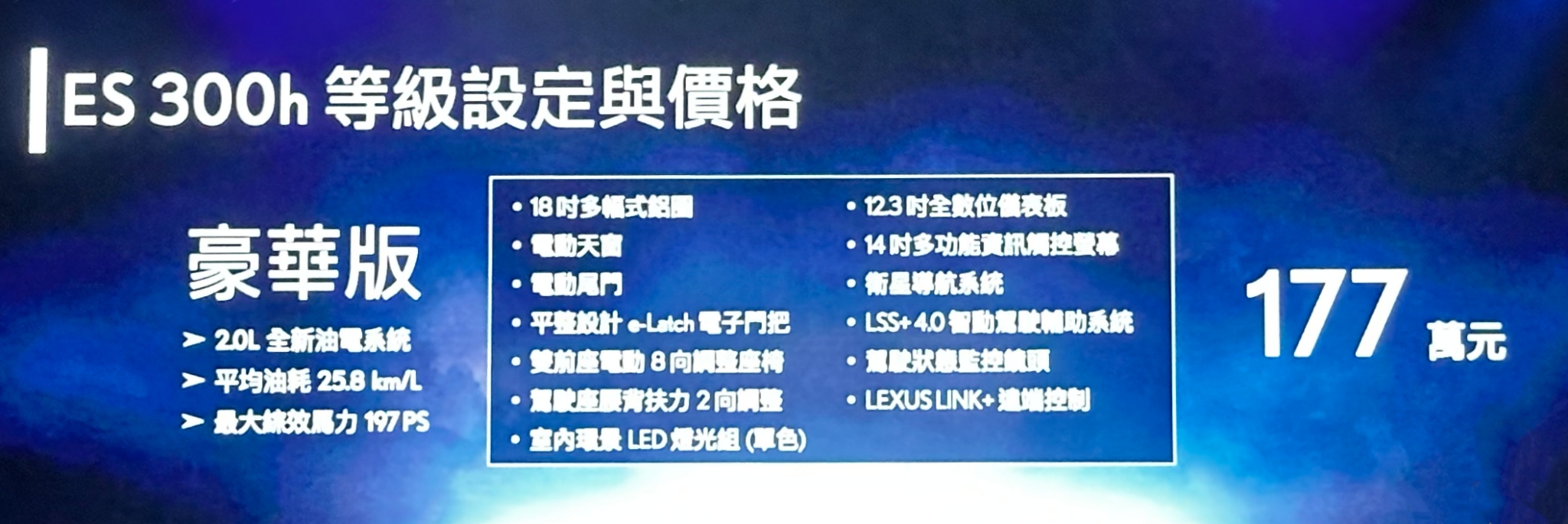 全新大改款 ES 建議售價 177 萬元起