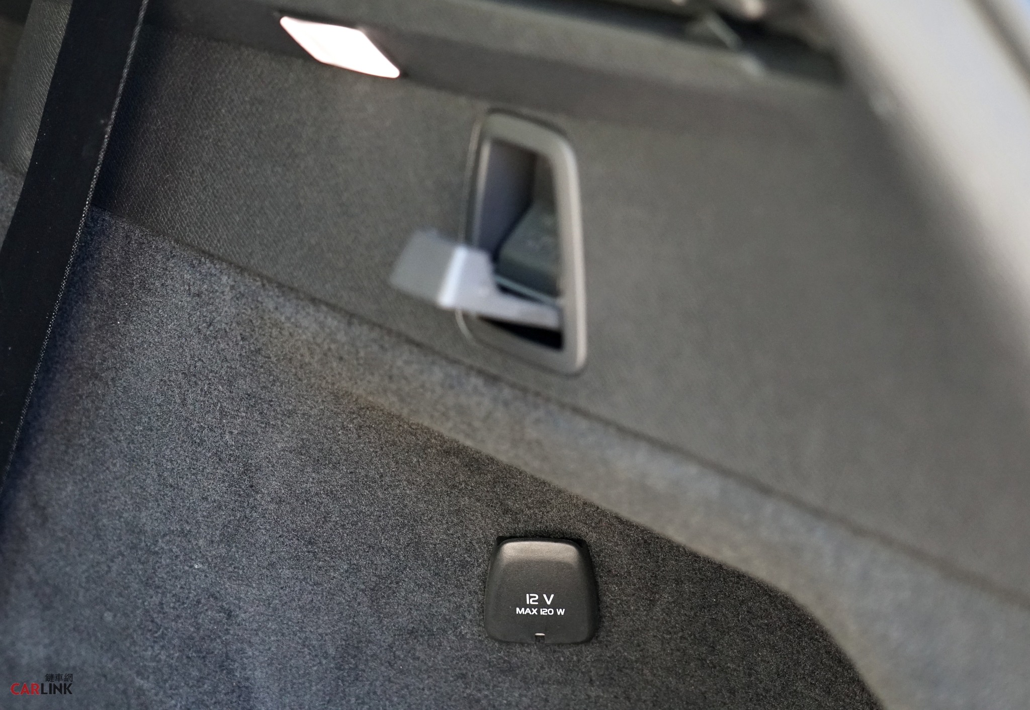 ▲▼XC90行李廂有一個平整開闊的空間,左右設有可承受5kg掛鉤、12V/120W充電插口、置物格網。