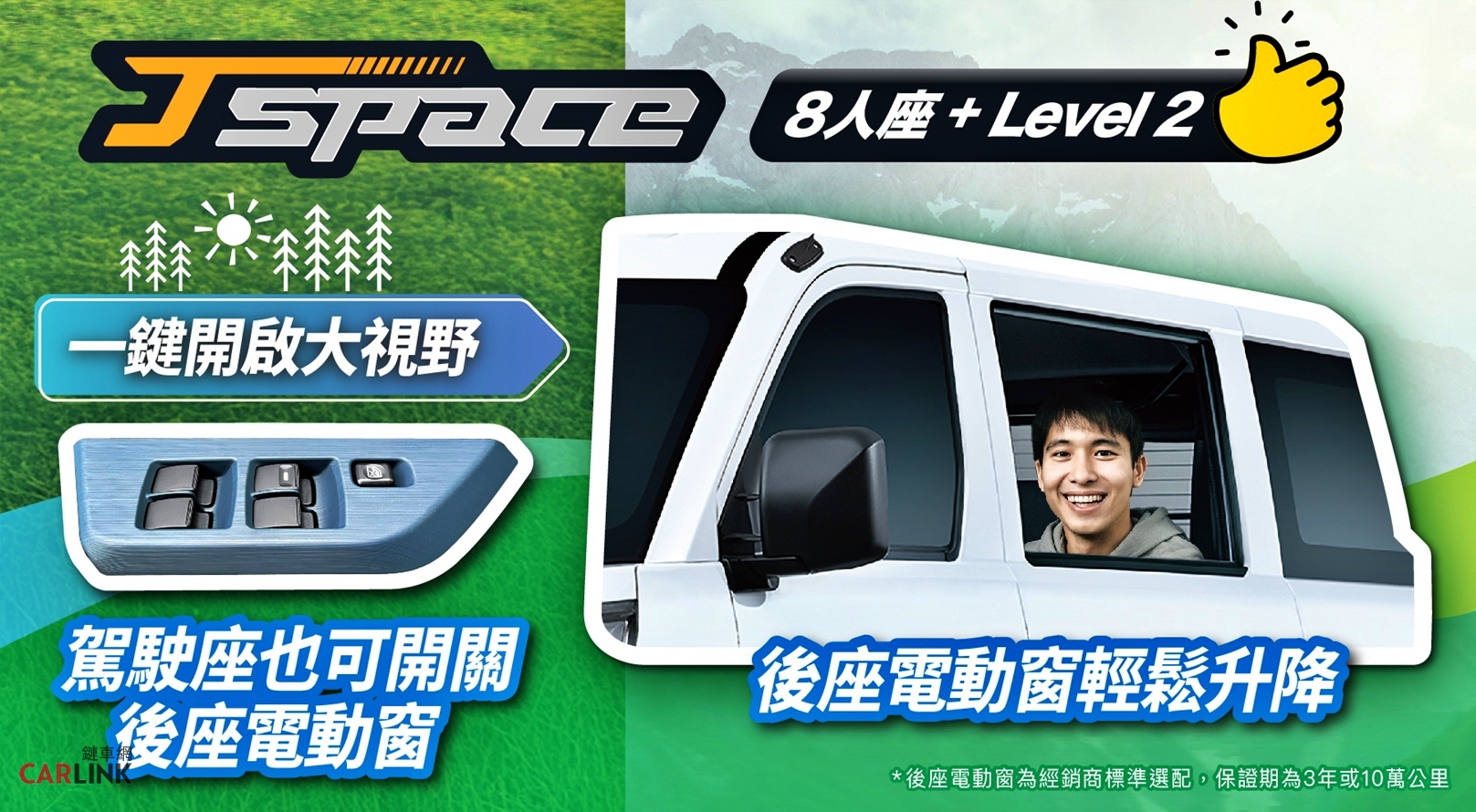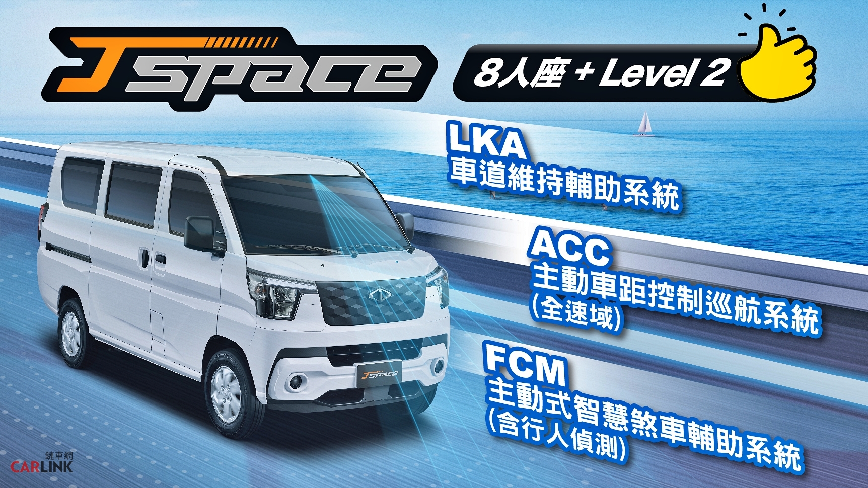 觀察自J SPACE上市以來,廂車LEVEL 2 ADAS車型的選購率超過七成,顯示LEVEL 2 ADAS大大滿足消費者對智慧輔助駕駛的強烈需求,本次全新推出之J SPACE 8人座旗艦型較尊貴型增加LEVEL 2 ADAS與後座電動窗配備超值上市,進化為國內8人座車型中最值得入手的新選擇。