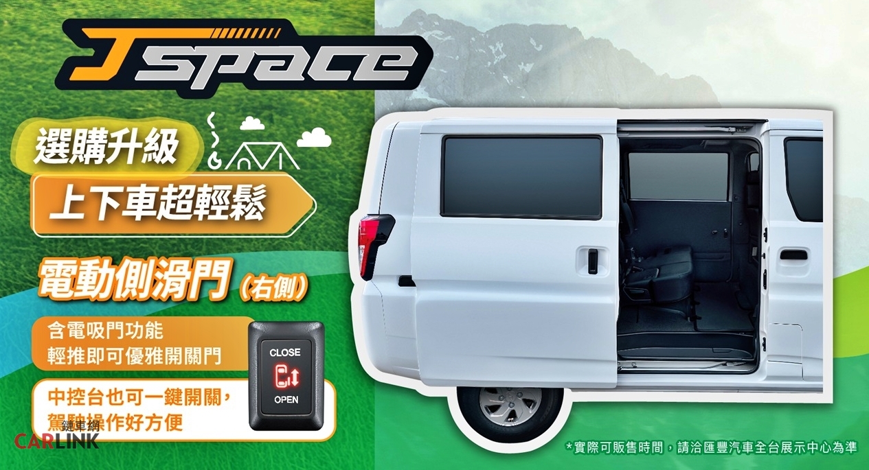 扣除貨物稅10萬優惠,J SPACE 62萬元輕鬆入手無負擔。為滿足更多消費者的使用需求,全新推出J SPACE 8人座旗艦型,除搭載LEVEL 2 ADAS先進駕駛,更同步推出貼心選購配件:豪華MPV等級的電動側滑門(右側/市價:25,800元),讓乘坐體驗更顯尊榮,只需輕推即可優雅開啟或關閉,前座也可以透過中控台的開關輕鬆操作,展現便利與品味兼具的設計巧思。另可選購電動側踏板(右側/市價:16,800元、雙側/市價:25,800元),車門開啟時會自動展開,讓乘客輕鬆上下車。消費者可依據自身需求,加價選購升級貼心配備,提升日常使用便利性,讓家人朋友一同體驗新世代J SPACE的多功能座駕魅力。