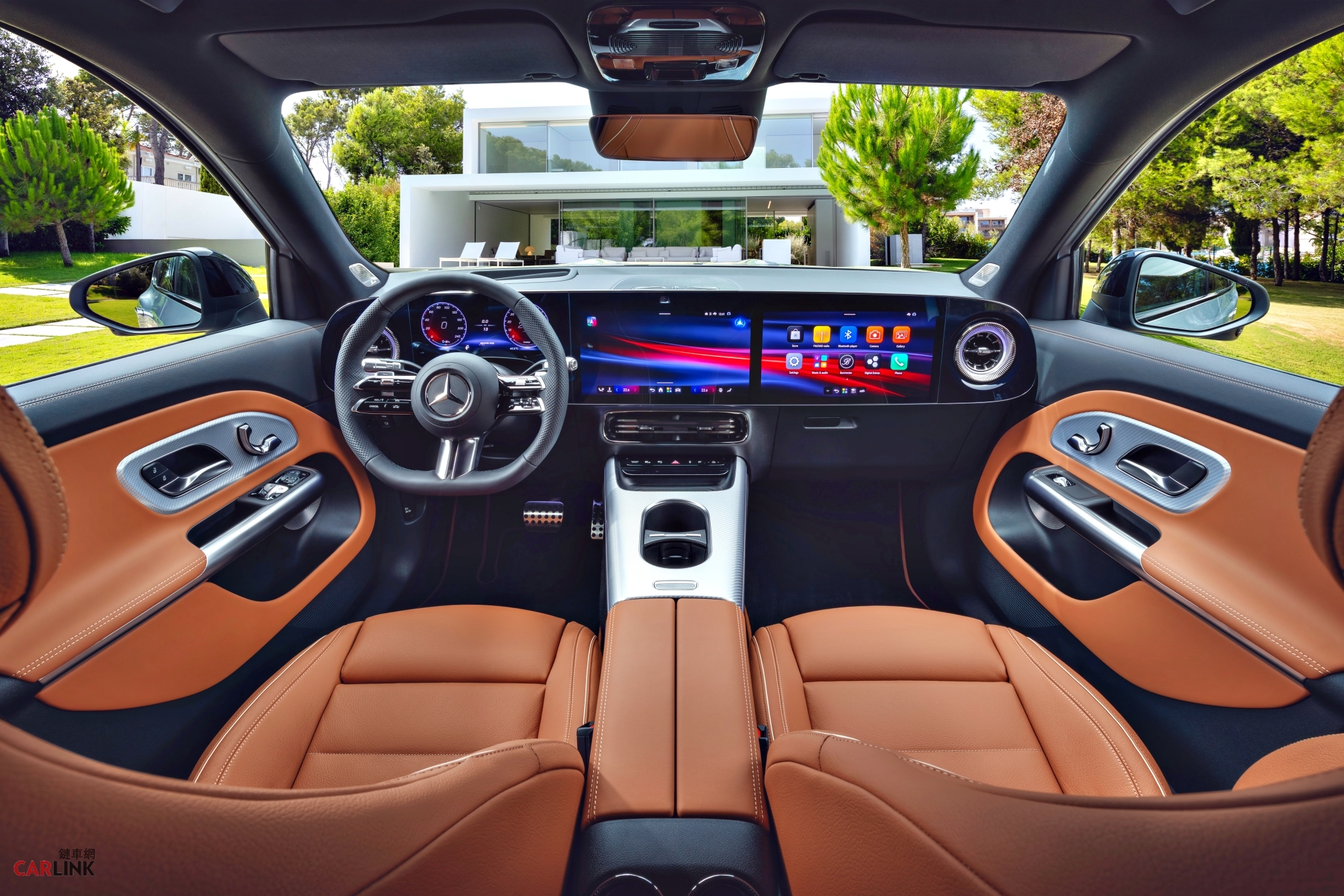 內裝最大亮點無疑是與新CLA同步的MBUX Superscreen三螢幕座艙,結合10.25吋數位儀表、14吋中控觸控螢幕及同尺寸副駕螢幕,讓駕駛與副駕乘客都能輕鬆操控資訊系統。全新設計的多功能方向盤重現實體滾輪和快捷鍵,操作直覺又便利,且配有引人注目的圓形空調出風口,搭配懸浮式中控台與無線充電,科技感與豪華感雙飛升。