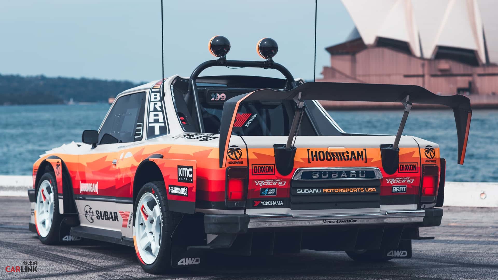 現年42歲的崔維斯·帕斯特拉納Travis Pastrana是一位頂尖的美國賽車手與「天生的表演者」,看完這支影片後,不難體會他的演技有多搞笑、多精湛!然而Travis Pastrana的專長可不僅止於拉力賽車,還包括二輪界的越野摩托車。因此他在Hoonigan出品的Gymkahana甩尾系列最新作品《Aussie Shred》瘋狂澳洲,展現其精湛的駕駛技術和精彩的娛樂效果!(相關影片 https://www.youtube.com/watch?v=daYgg2YSA2g&t=14s )至於那輛古董+古典的Subaru Brataroo 9500 Turbo,乃是Hoonigan和Subaru美國賽車團隊聯手打造的甩尾式樣改裝車,基礎乃是1978年Subaru Brat輕型客貨車,採用2.0升水平對臥引擎,經過大幅度改裝之後,具備670hp最大馬力和94kgm最大扭力,搭配六速序列式手排與全時四輪驅動底盤,再結合賽車等級防滑差速器。因引擎最高轉速達到驚人的9500rpm,因此一定要好好欣賞其特殊音效,震撼力十足,配合精彩的甩尾與飛越特技,實在是太過癮了!(金卡納系列精彩回顧 https://www.lian-car.com/articles/read/38201.html )