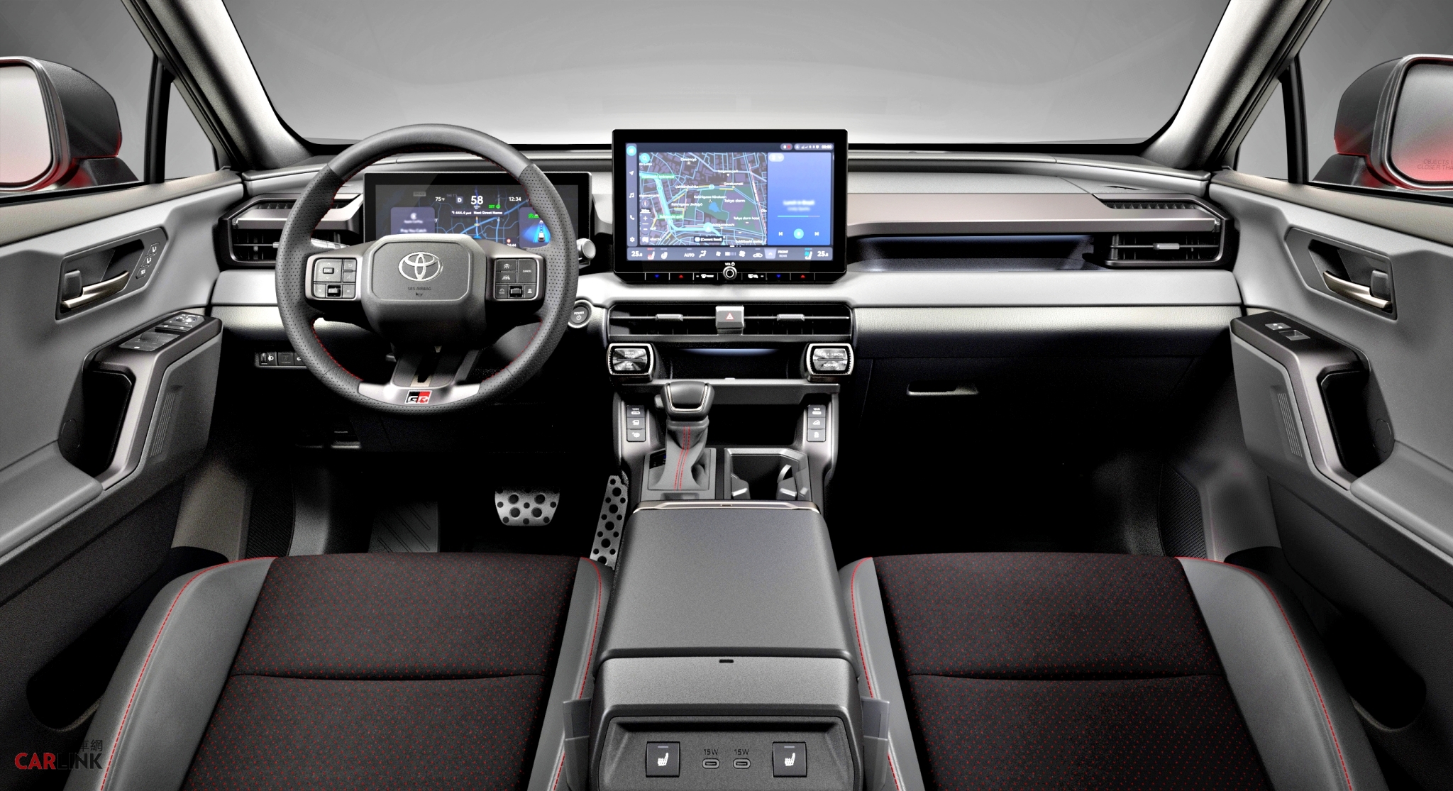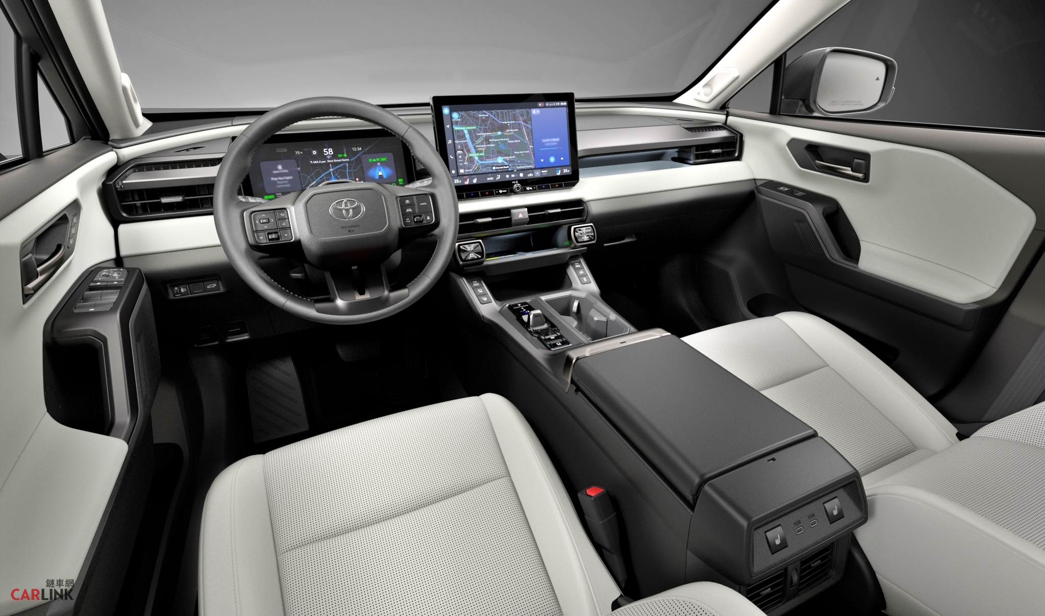 GR Sport(高性能運動版)2)內裝科技:全新中控設計採「Island Architecture」風格,讓操作介面朝向駕駛者集中、更易讀取。配備大尺寸觸控螢幕與最新Toyota多媒體系統,整合Apple CarPlay/Android Auto等連線功能。頂規搭載舒適性功能如座椅加熱、通風等選項也已曝光。3)主動安全:Toyota全新RAV4將搭載最新一代TSS 4.0主動安全系統,包括車道維持輔助、預測式巡航、自動煞車等多項功能,確保日常行路安全無虞。