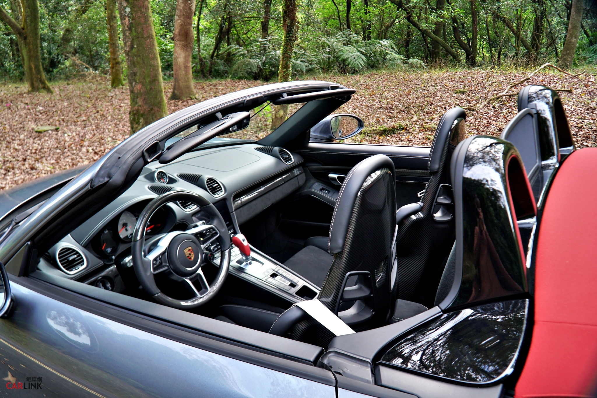 內裝上Boxster GTS 4.0沒有太多花俏科技,但一切機能配置都是為了駕駛而設。跑車計時套件、Race-Tex座椅、GTS專屬飾板,都讓整體駕駛氛圍更有戰鬥感。座椅支撐性很好,長途駕駛也不會感到疲累;方向盤握感紮實,換檔撥片的位置也很自然。