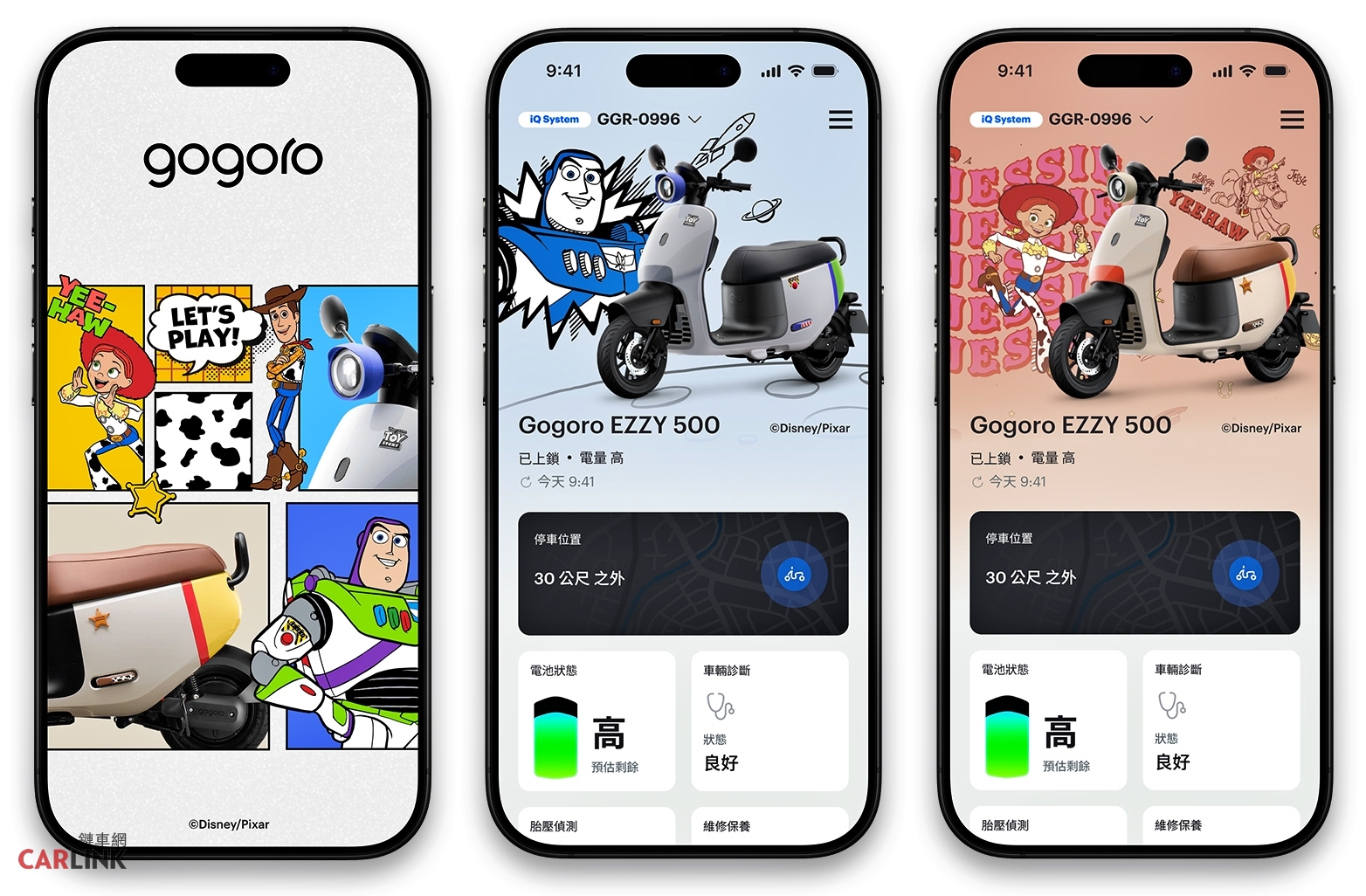此外,凡入手 Gogoro EZZY 500 玩具總動員系列車款,車主就能在 Gogoro App 同步解鎖專屬角色主題介面7,從車身外觀到數位操作都融入《玩具總動員》元素,為車主提供日常騎乘中的專屬陪伴體驗。