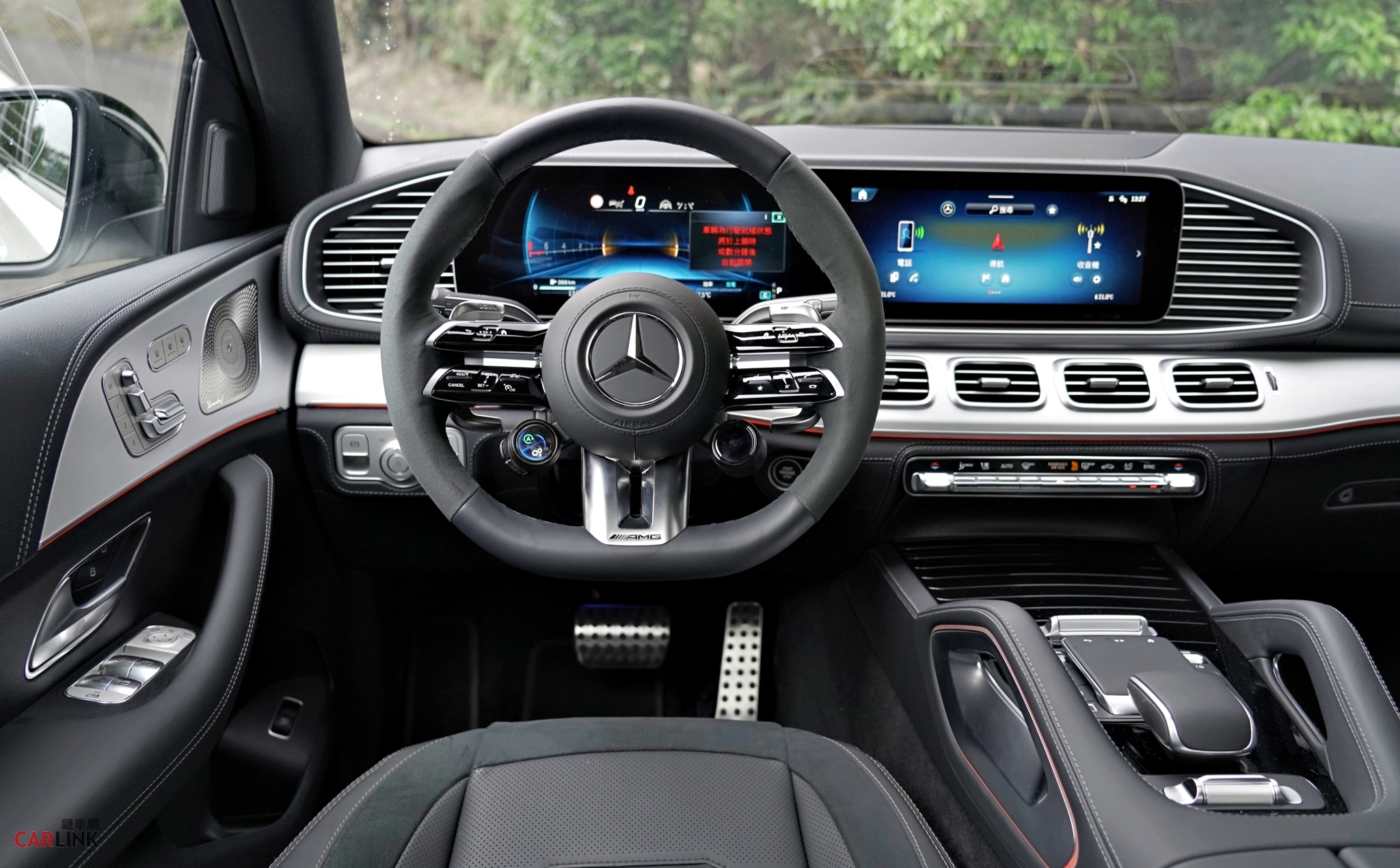 Nappa 真皮、紅色縫線、12.3 吋顯示系統,以及 MBUX 與高級音響等配備,並不是為了裝飾,而是為了讓駕乘者在不同情境間迅速切換:從沉穩日常到熱血駕馭。儀錶板的資訊豐富度甚至讓人想到,在未來的豪華休旅中,數位化與客製化資訊介面將是核心競爭力,而不再只是豪華車的附屬品。