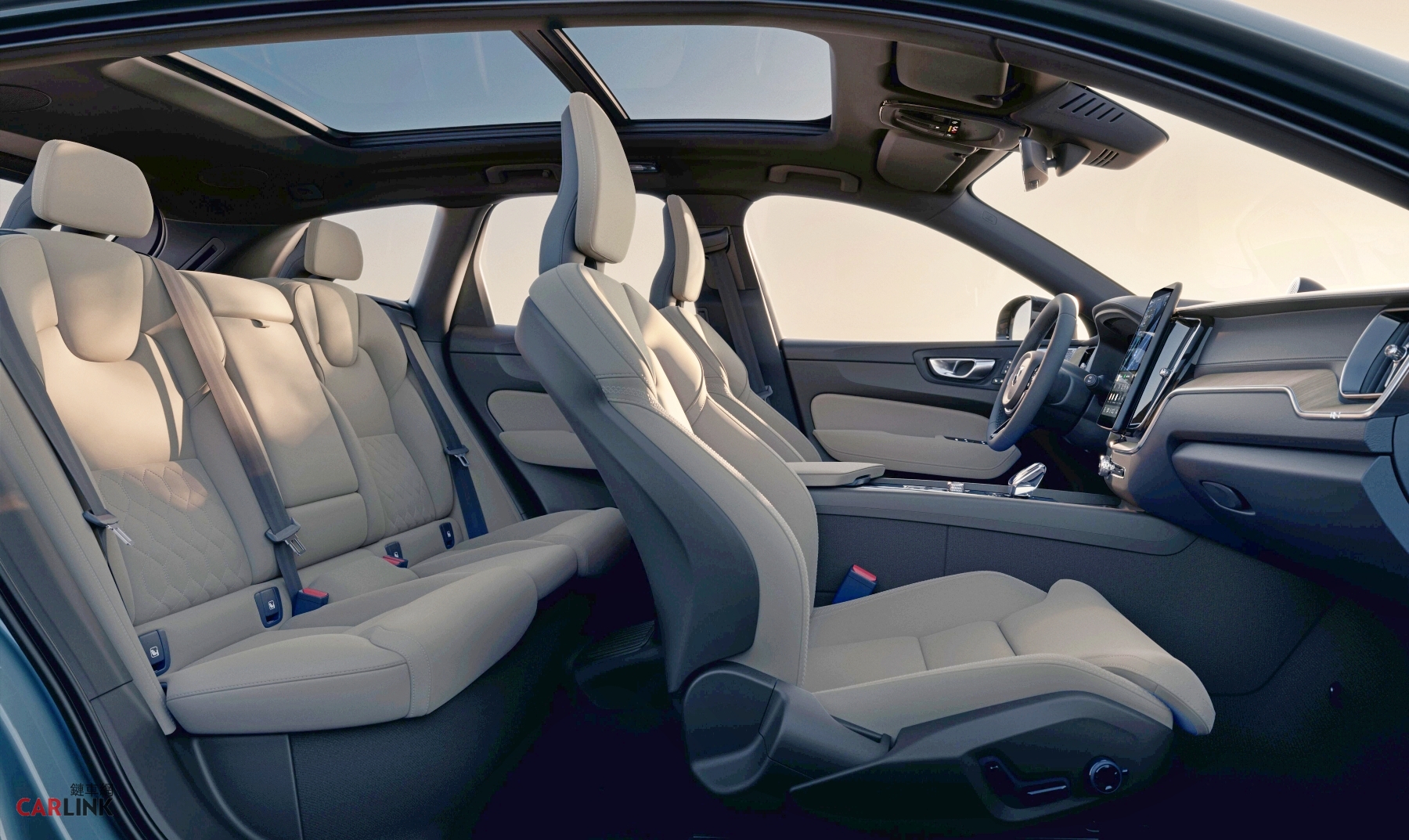 New XC60 對於座艙質感的追求,體現在每一處觸手可及的細節。內裝材質選用全新開發的 Nordico® 透氣植然皮座椅面料,結合生物基循環材料,不僅展現細膩滑順的絲絨觸感,更在豪華層次中體現對環境永續的堅定承諾;中央鞍座經過優化重新配置,整合更具靈活度的 2+1 杯架設計與 15W 快充無線充電板,讓移動生活從容自適。為了構築最純粹的北歐感官空間,New XC60 特別於 A 柱與 B 柱強化隔音材質,全車系標配多層膠合安全玻璃側窗,能有效阻隔風噪與路噪,將車室轉化為極致靜謐的北歐移動客廳,在每一趟旅程中,都能享有最高品質的感官留白,真正體現「隨心,就自由」的駕馭境界。