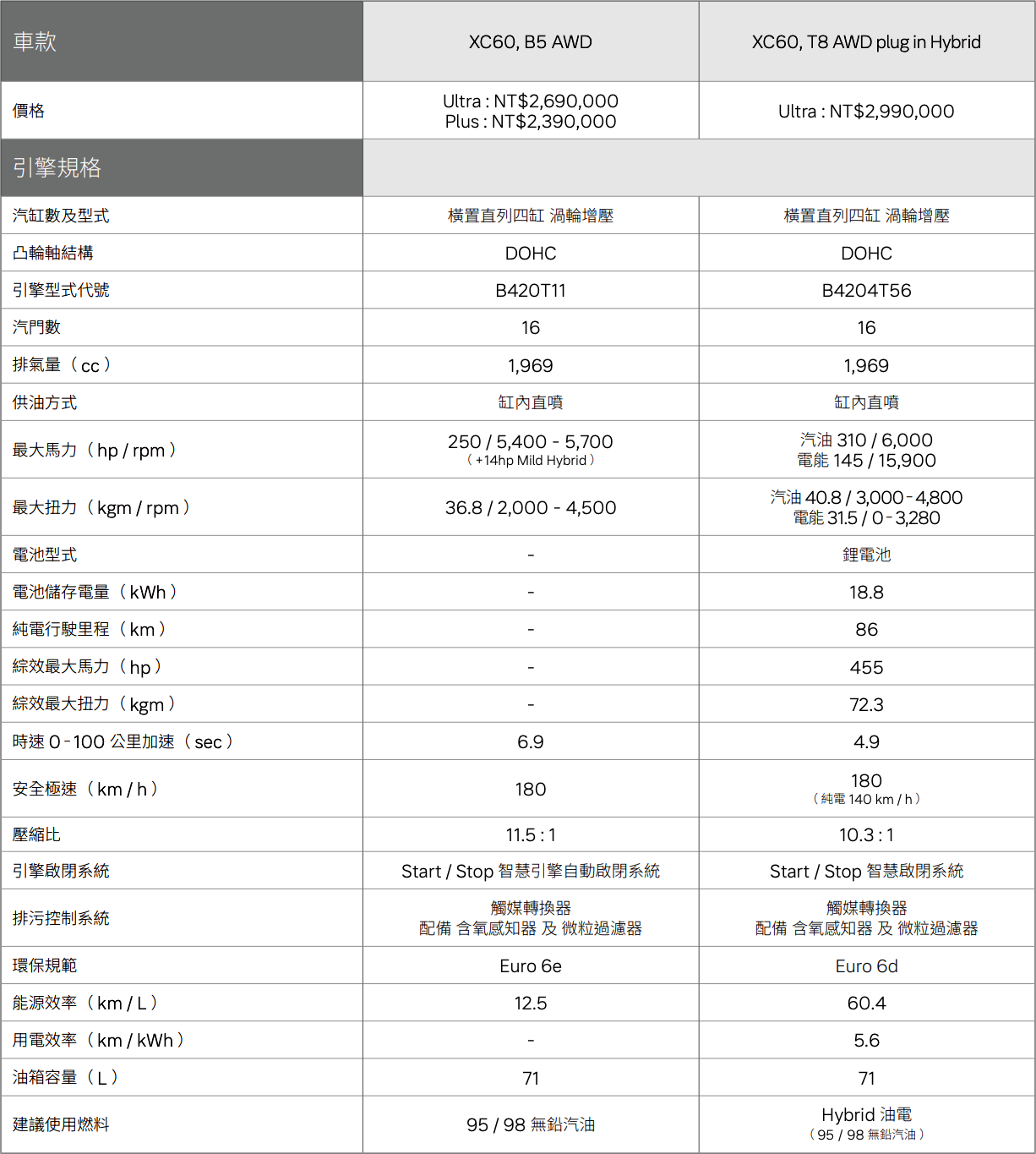New XC60 T8 PHEV Ultra AWD:$299 萬元